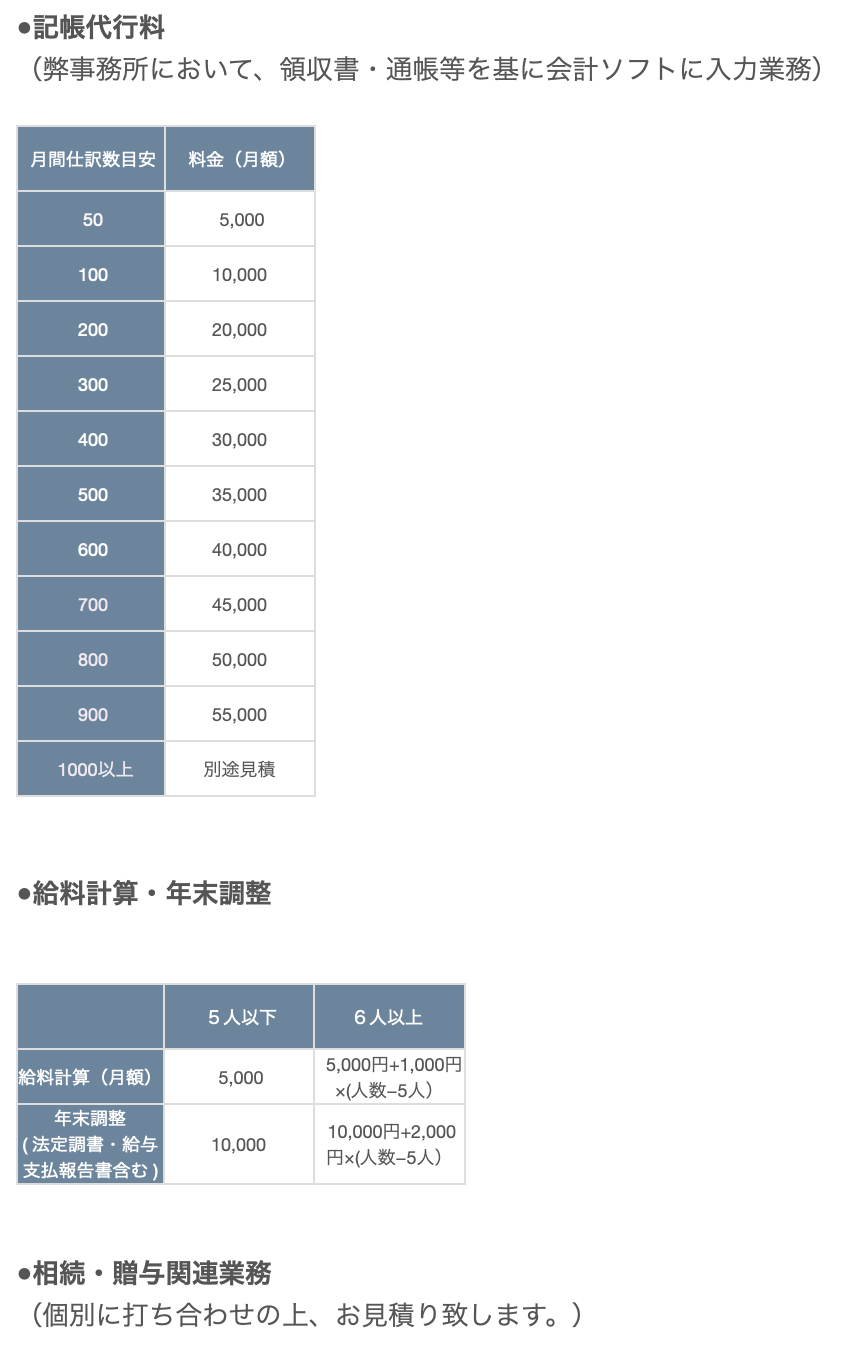 ※決算報告・確定申告のみのご依頼の場合は、上記に関わらず別途お見積りします。